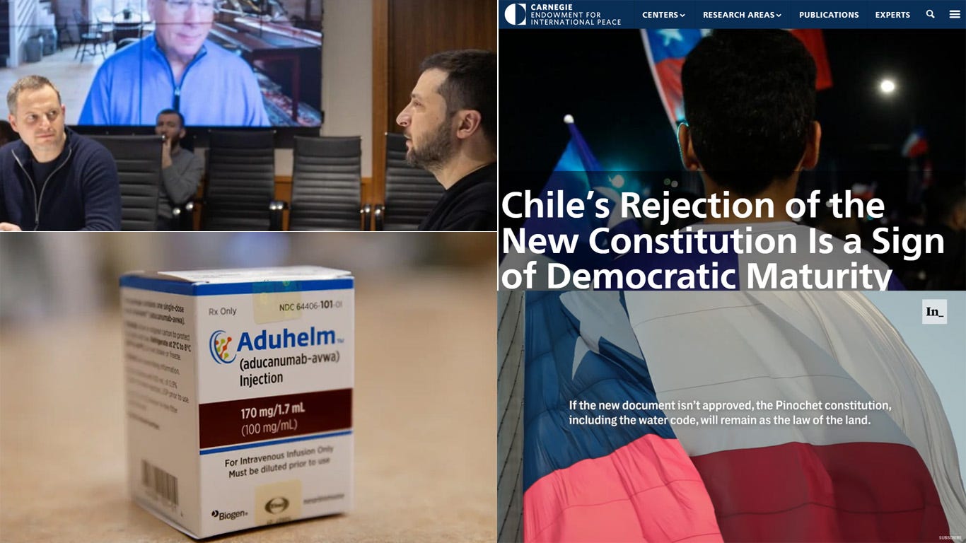 Three events: The failure to pass Chile's new constitution, Biogen's new Alzheimer drug Aduhelm's price gouging, & the complete corporatization of Ukraine illustrates a systemic media fail.