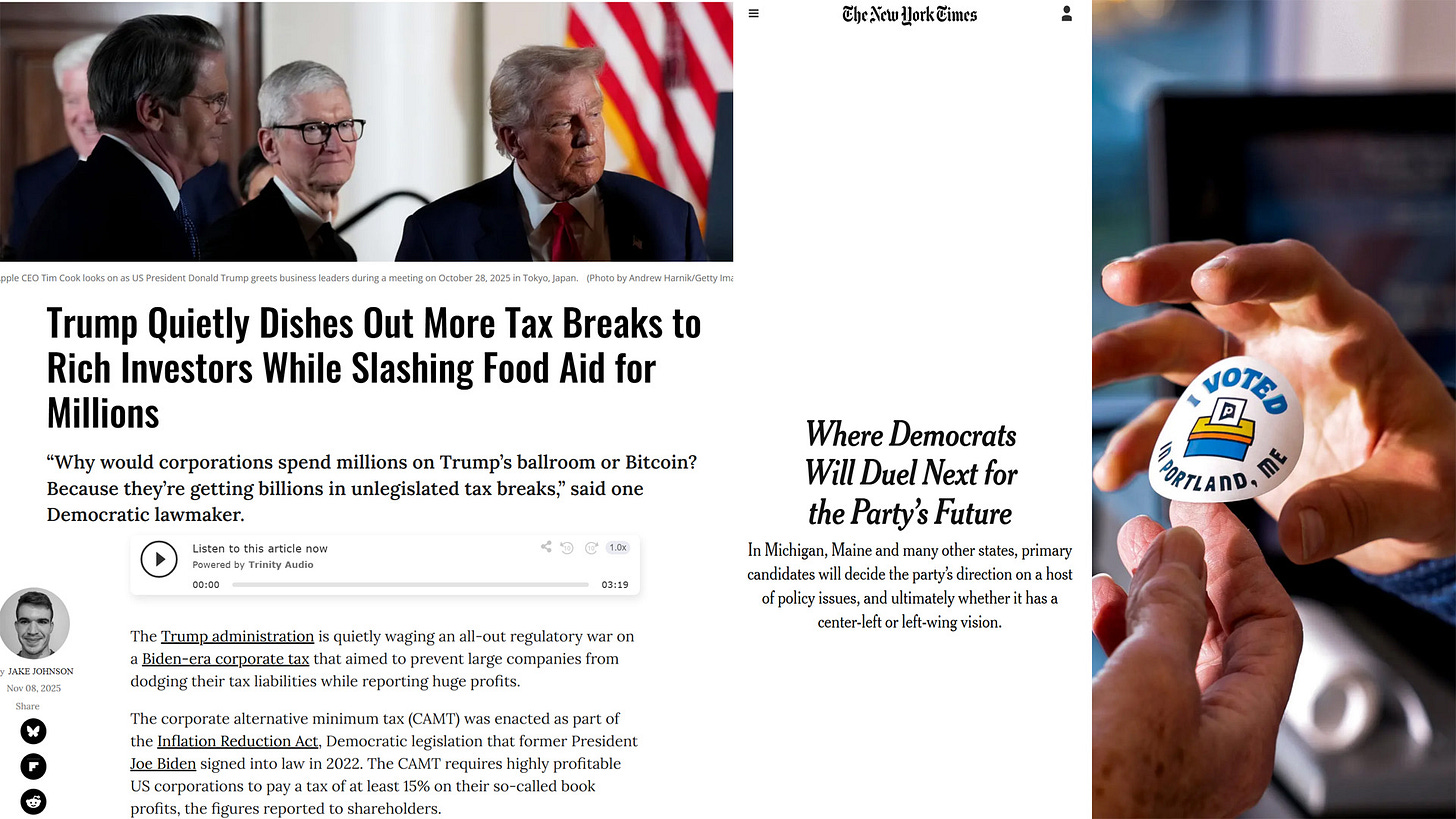The battle for America’s political soul is heating up again — not just in Washington, but in the heartlands of Michigan, Maine, and beyond. As Democrats face off over whether the party should move toward a bold, progressive future or cling to centrist caution, Donald Trump is quietly using the shadows of policy to reward his billionaire friends while millions lose food aid. Today on Politics Done Right, we connect the dots between the political duels shaping the Democratic Party’s identity and the stealth class warfare being waged through tax codes and corporate favoritism.