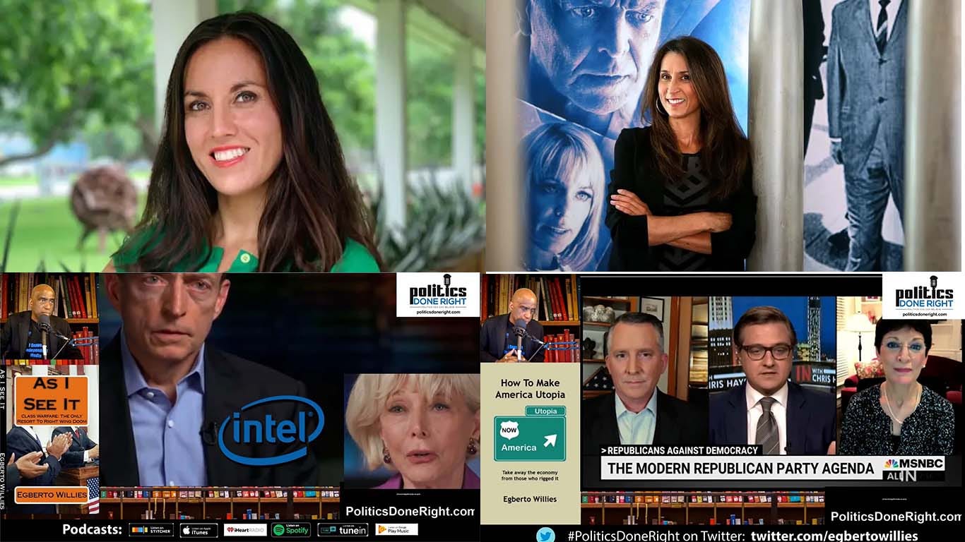 Watch two inspiring conversations with two powerful women, one political, the other personal. Will Dems leap to victory through GOP open door? Obscene Corporate Socialism exposed.