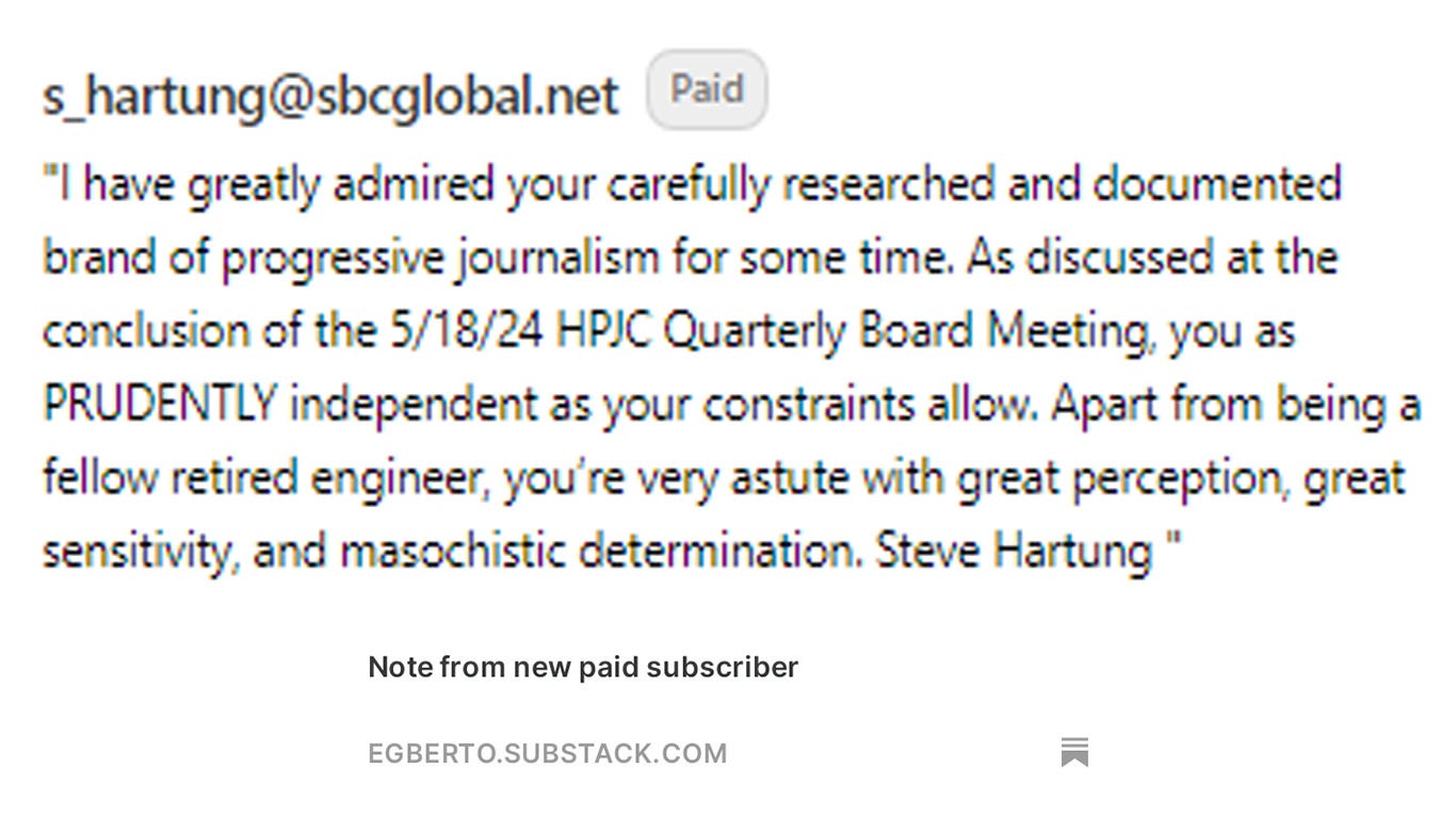As of today, we have 9.57 thousand followers and 86 supporting (paid) subscribers. Misinformation funded by the deep pockets of our Oligarchy floods the internet. We are using all of our platforms on-air, online, and in publications to counter that. We ask that you invest the equivalent of less than a coffee to ensure we can keep doing this. Please invest in a Democracy that serves all of us by becoming a paid subscriber. It comes with many benefits.