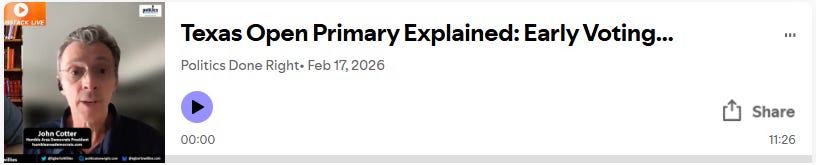 Texas votes early. Democracy demands it. In this conversation with Humble Area Democrats President John Cotter, the urgency of the 2026 Texas Democratic Primary is the focus. The message is clear: vote early, vote informed, and vote all the way down the ballot. Texas operates an open primary system, allowing voters to choose a party primary without prior party registration. Early voting reduces the risk of last-minute disruptions and empowers working Texans to participate without barriers. As voter suppression efforts intensify nationwide, civic vigilance becomes not optional but essential.